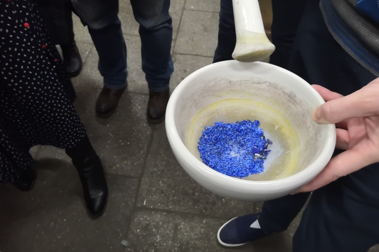 А заведующий лабораторией гетерогенных металлических систем Роман Минин на глазах у гостей синтезировал неорганический пигмент синего цвета. Такие неорганические пигменты широко применяются в составе надглазурных и подглазурных красок для керамических, фаянсовых, фарфоровых изделий, в лакокрасочных материалах, отделочных строительных смесях, в порошковых красках для окрашивания металла, в составе цветных наполнителей полимеров для 3D-печати.