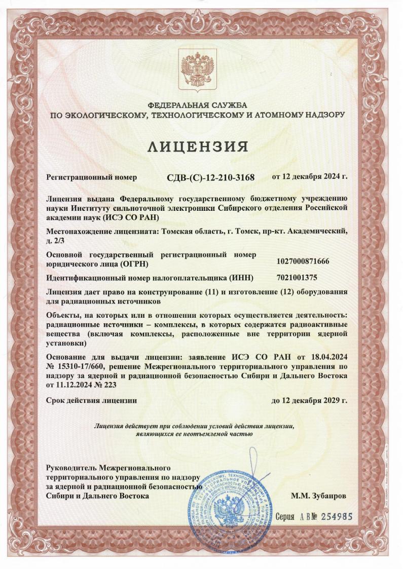 Лицензия, дающая право на конструирование и изготовление оборудования для радиационных источников