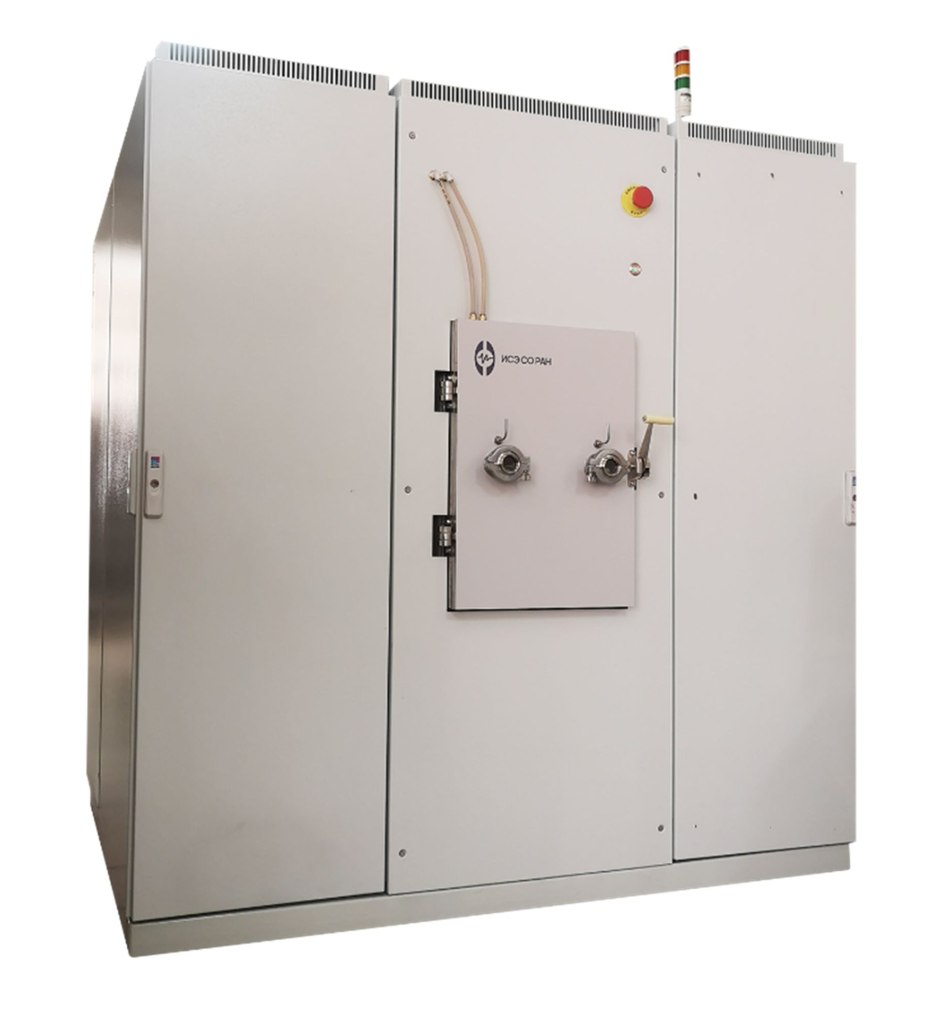 Установка предназначена для нанесения двухслойного тонкопленочного электролита на основе оксидов (ZrO2)0,92:(Y2O3)0,08 и Ce0.8Sm0.2O2-δ на аноды твердооксидных топливных элементов планарной конструкции.