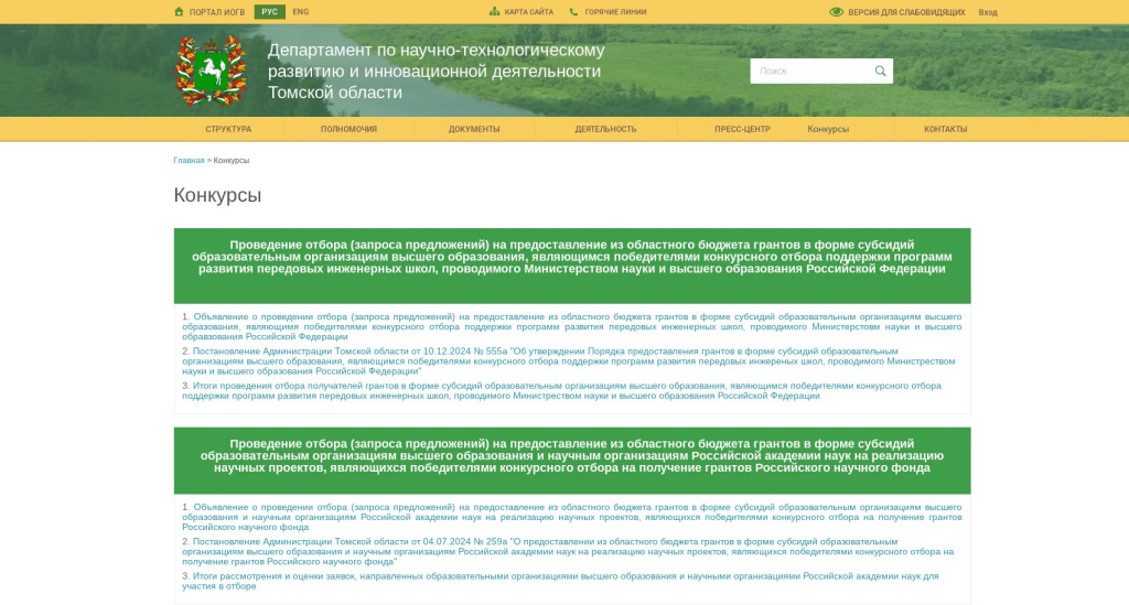 Департамент по научно-технологическому развитию и инновационной деятельности Томской области сообщает о начале конкурса на соискание премий Томской области в сфере образования, науки, здравоохранения и культуры и на звание «Лауреат премии Томской области в сфере образования, науки, здравоохранения и культуры».