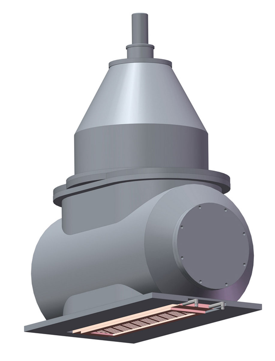 Вывод ускоренных электронов в атмосферу осуществляется через выводное фольговое окно с опорной решеткой размерами (150×750) мм. На опорной решетке закрепляться Al-Be фольга толщиной 40 мкм для вывода электронов в газ высокого давления, или более толстая (~100 мкм) для генерации тормозного рентгеновского излучения.