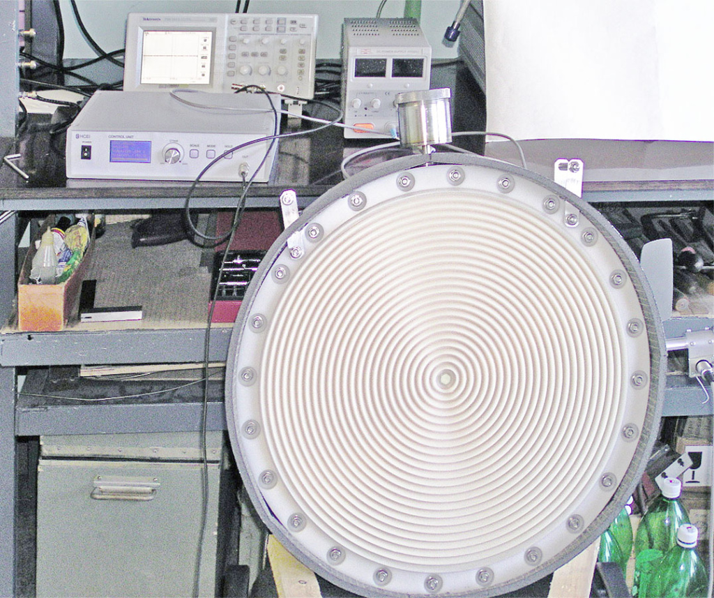 Калориметр предназначен для измерения энергии мощных нано- и микросекундных импульсов СВЧ-излучения X-диапазона в соответствии с нижеприведенными характеристиками. Калориметр состоит из плоской широкоапертурной поглощающей СВЧ-нагрузки, блока контроля и регистрации, калибратора и набора соединяющих кабелей. Действие калориметра основано на расширении рабочей жидкости, заполняющей поглощающую нагрузку, при поглощении в ней энергии СВЧ-импульсов. Нагрузка подвешивается перед раскрывом передающей антенны СВЧ-генератора. Блок контроля и регистрации обеспечивает предварительный прогрев объема поглощающей нагрузки в автоматическом режиме, а также установку калориметра на нуль в режиме калибровки и измерения энергии СВЧ-излучения. Регистрация выходного сигнала - осциллографическая.